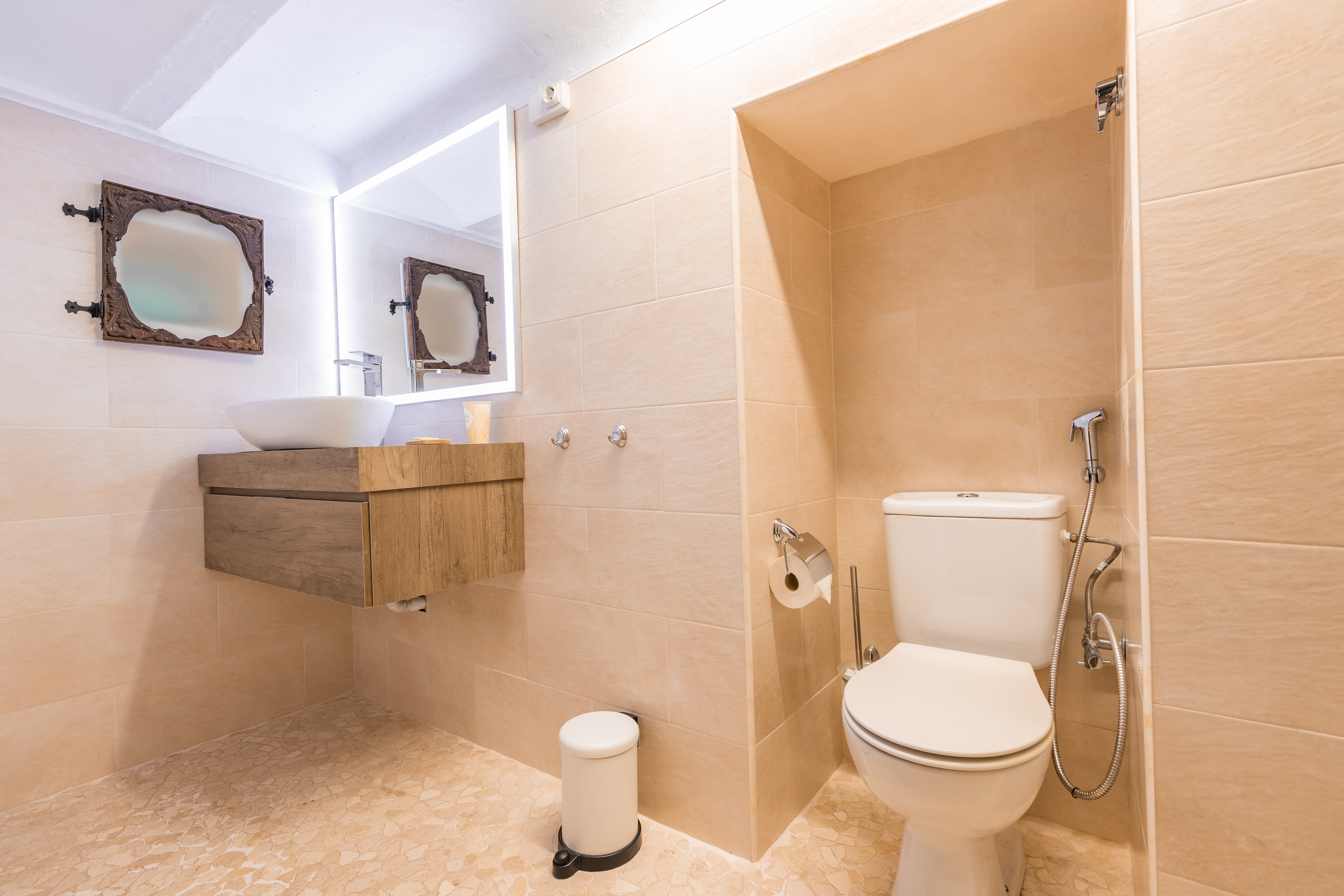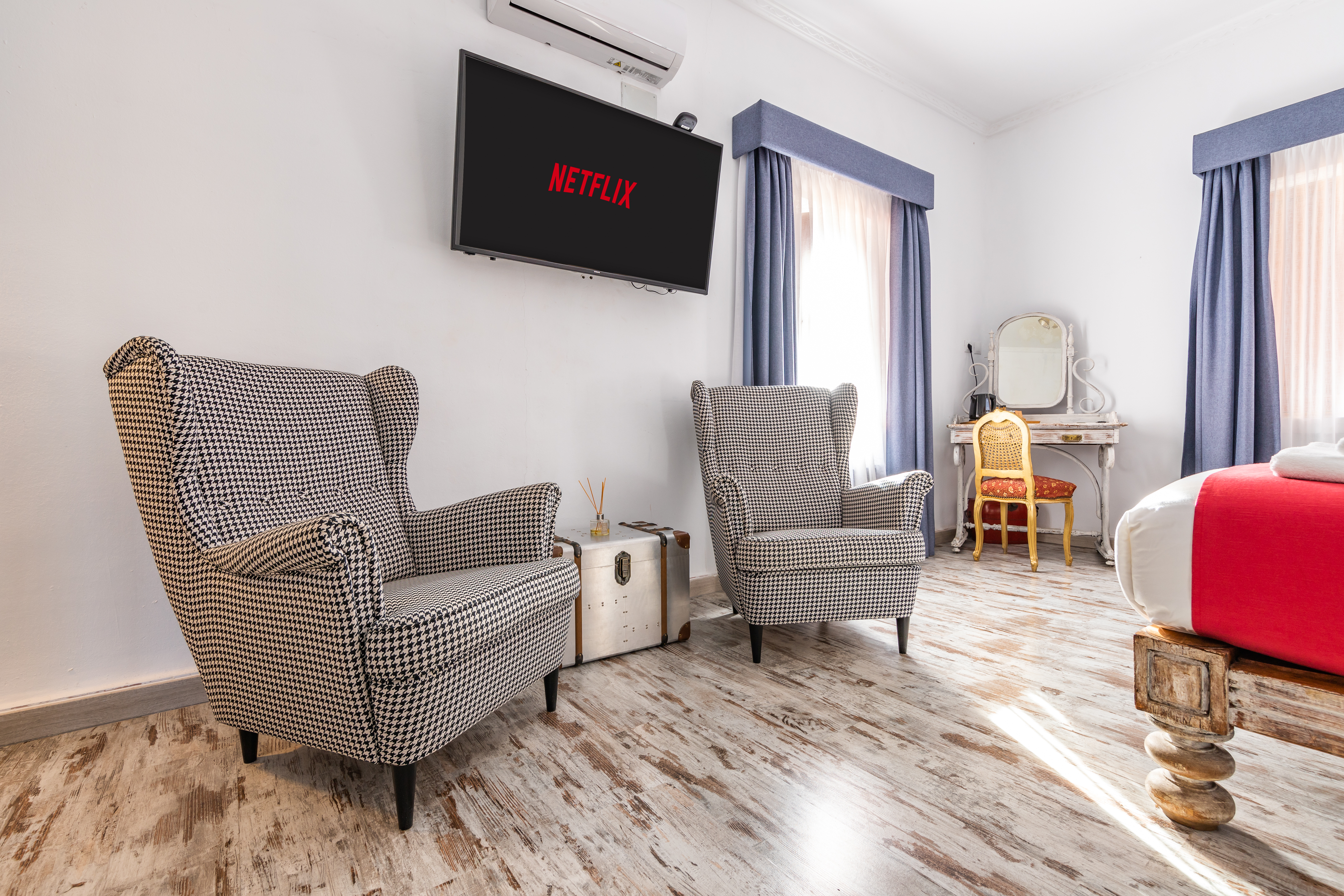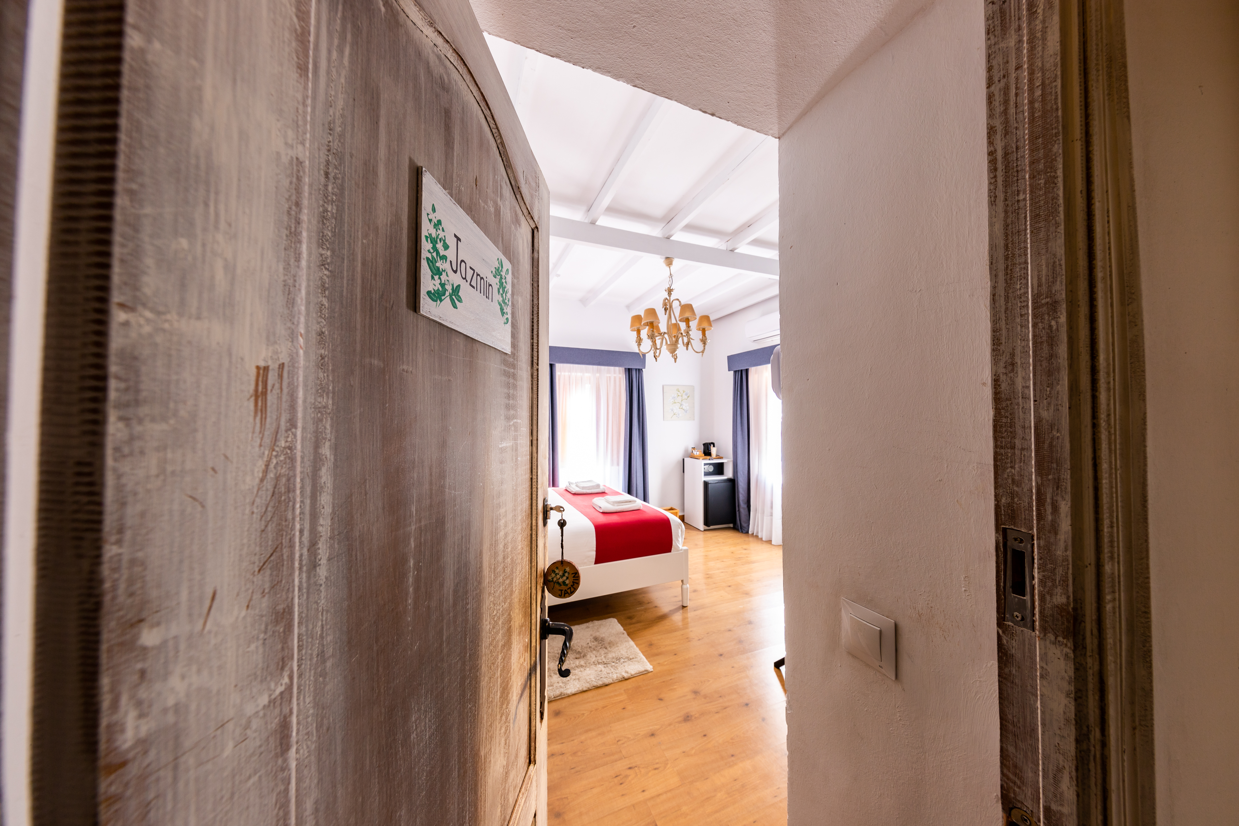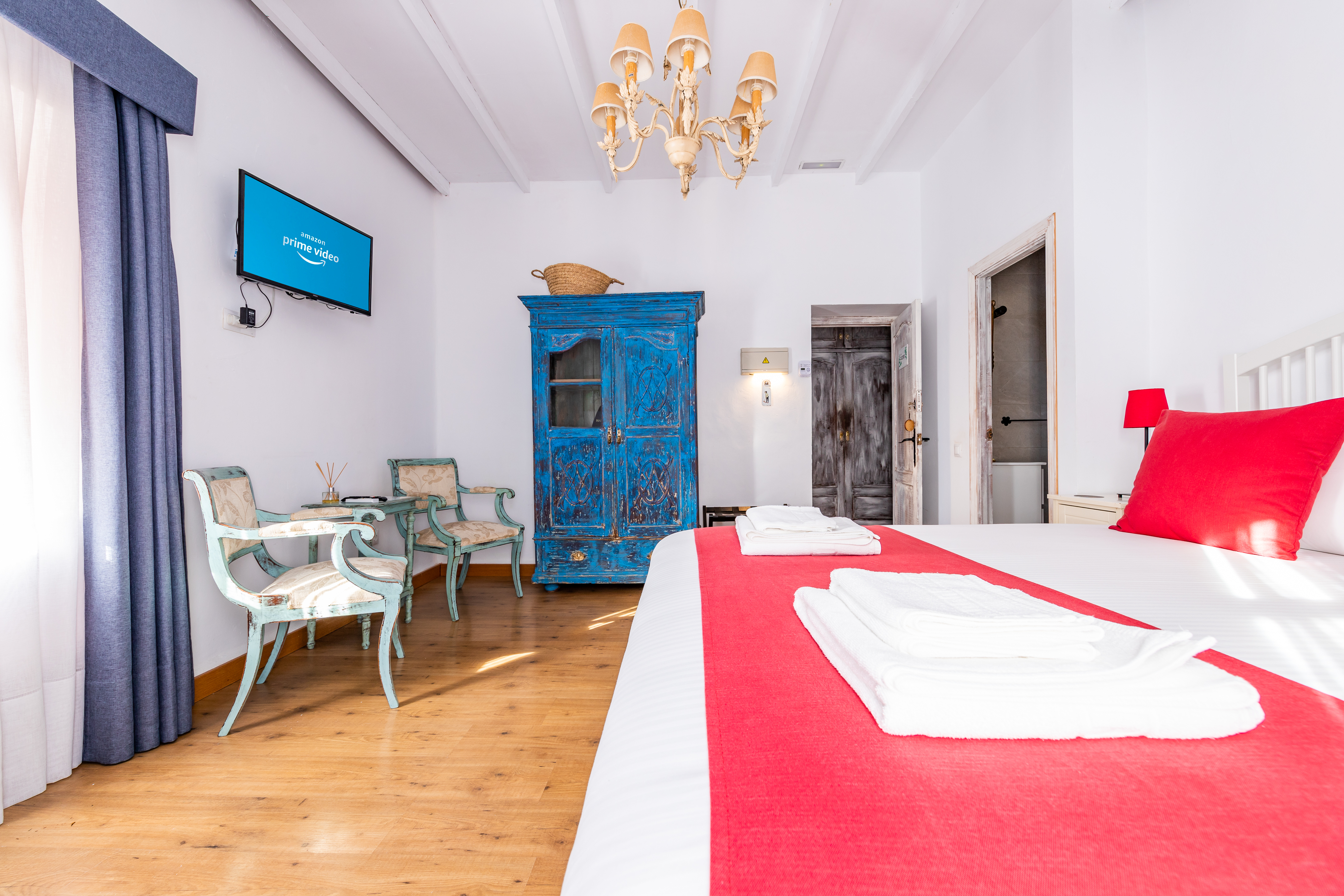 Muy luminosa y confortable habitación de 22 M2, cuenta con una cama doble tamaño Queen, baño privado, aire acondicionado y calefacción, minibar, caja fuerte, Wifi de alta velocidad, Televisor Smart TV de 32 pulgadas, hervidores para té y café, secador de pelo, luz de emergencia y detectores de humo y CO2. Al frente de la habitación dispone de mesas y sillas con toldo ideales para disfrutar el desayuno o un aperitivo a cualquier hora del día.